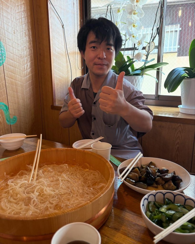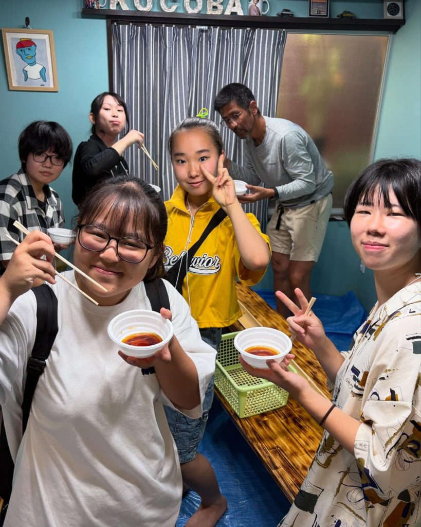 当日は FCリアル さんにご協力いただき、今では珍しくなった竹を使った本格的な 流しそうめん を実施。